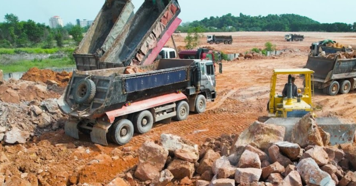 Đá dăm cũng được dùng để san lấp mặt bằng, đắp nền nhà xưởng hoặc xử lý đất yếu trước khi thi công. Các hạt đá nhỏ và đều giúp gia cố nền, tạo độ ổn định và giảm hiện tượng lún, nứt công trình. Sử dụng đá dăm trong san lấp còn giúp tiết kiệm vật liệu khác và rút ngắn tiến độ thi công.