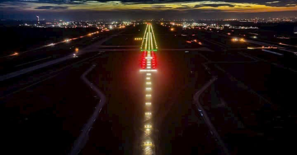 Hình ảnh đường băng về đêm khi máy bay đáp thử